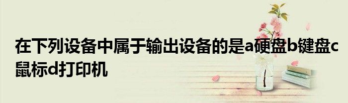 关于在下列设备中属于输出设备的是a硬盘b键盘c鼠标d打印机这个很多人还不知道,今天菲菲来为大家解答以上的问题,现在让我们一起来看看吧!