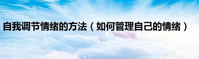 关于自我调节情绪的方法,如何管理自己的情绪这个很多人还不知道,今天菲菲来为大家解答以上的问题,现在让我们一起来看看吧!