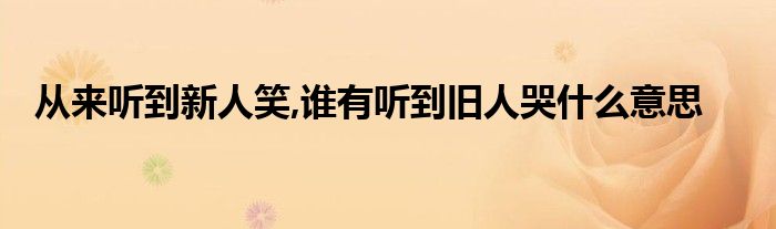 关于从来听到新人笑,谁有听到旧人哭什么意思这个很多人还不知道,今天菲菲来为大家解答以上的问题,现在让我们一起来看看吧!