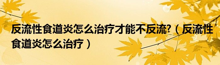 关于反流性食道炎怎么治疗才能不反流?,反流性食道炎怎么治疗这个很多人还不知道,今天菲菲来为大家解答以上的问题,现在让我们一起来看看吧!