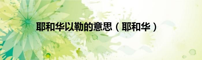 关于耶和华以勒的意思,耶和华这个很多人还不知道,今天菲菲来为大家解答以上的问题,现在让我们一起来看看吧!