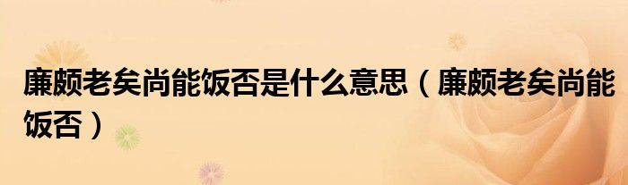 关于廉颇老矣尚能饭否是什么意思,廉颇老矣尚能饭否这个很多人还不知道,今天菲菲来为大家解答以上的问题,现在让我们一起来看看吧!