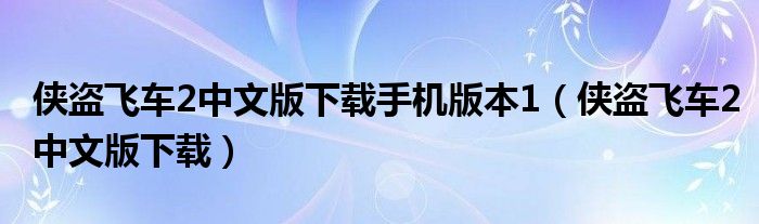 侠盗飞车2中文版下载手机版本1(侠盗飞车2中文版下载)