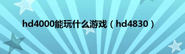 大家好,小飞来为大家解答以上问题,hd4000能玩什么游戏,hd4830很多人还不知道,现在让我们一起来看看吧!