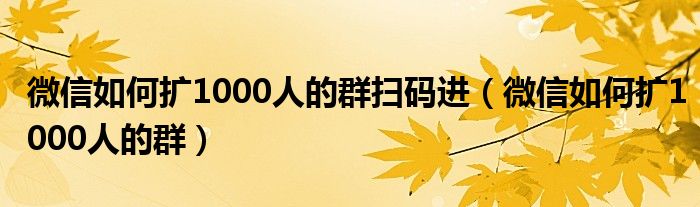 大家好,小晋来为大家解答以下问题,关于微信如何扩1000人的群扫码进,微信如何扩1000人的群很多人还不知道,今天让我们一起来看看吧!