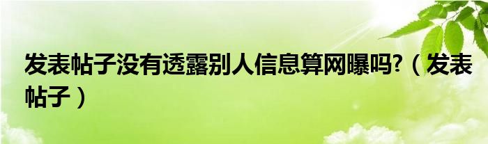大家好,小晋来为大家解答以下问题,关于发表帖子没有透露别人信息算网曝吗?,发表帖子很多人还不知道,今天让我们一起来看看吧!