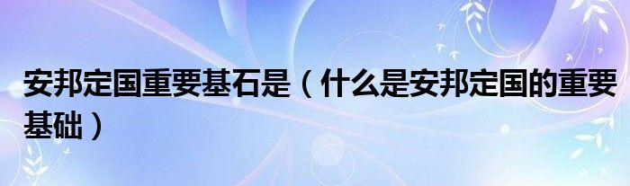 大家好,小晋来为大家解答以下问题,关于安邦定国重要基石是,什么是安邦定国的重要基础很多人还不知道,今天让我们一起来看看吧!
