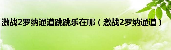 激战2罗纳通道跳跳乐在哪,激战2罗纳通道这个很多人还不知道,小飞来为大家解答以上的问题。现在让我们一起来看看吧!