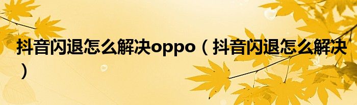 大家好,小晋来为大家解答以下问题,关于抖音闪退怎么解决oppo,抖音闪退怎么解决很多人还不知道,今天让我们一起来看看吧!