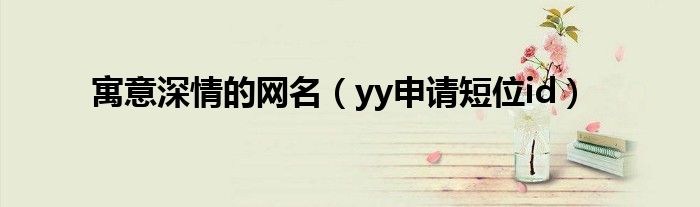 大家好,小飞来为大家解答以上问题,寓意深情的网名,yy申请短位id很多人还不知道,现在让我们一起来看看吧!