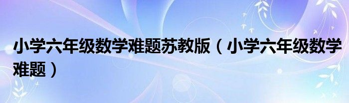 关于小学六年级数学难题苏教版,小学六年级数学难题这个很多人还不知道,今天菲菲来为大家解答以上的问题,现在让我们一起来看看吧!