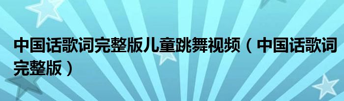 中国话歌词完整版儿童跳舞视频(中国话歌词完整版)