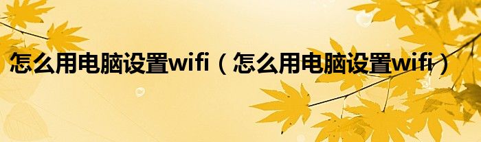 怎么用电脑设置wifi: