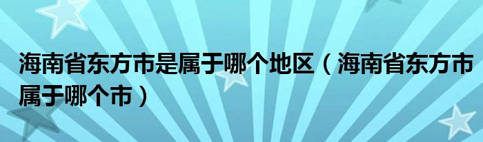 关于海南省东方市是属于哪个地区,海南省东方市属于哪个市这个很多人还不知道,今天菲菲来为大家解答以上的问题,现在让我们一起来看看吧!