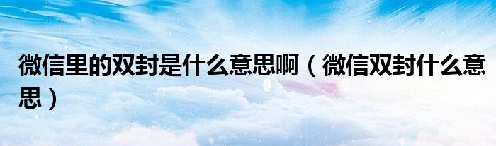 大家好,小晋来为大家解答以下问题,关于微信里的双封是什么意思啊,微信双封什么意思很多人还不知道,今天让我们一起来看看吧!