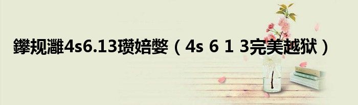鑻规灉4s6.13瓒婄嫳,4s 6 1 3完美越狱很多人还不知道,乐乐来为大家解答以上问题,现在让我们一起来看看吧!