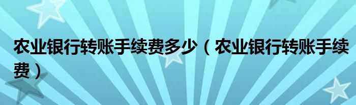 农业银行转账手续费多少,农业银行转账手续费很多人还不知道,乐乐来为大家解答以上问题,现在让我们一起来看看吧!