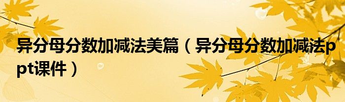 关于异分母分数加减法美篇,异分母分数加减法ppt课件这个很多人还不知道,今天菲菲来为大家解答以上的问题,现在让我们一起来看看吧!