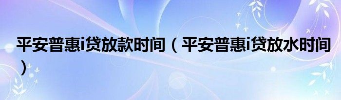 大家好,小晋来为大家解答以下问题,关于平安普惠i贷放款时间,平安普惠i贷放水时间很多人还不知道,今天让我们一起来看看吧!