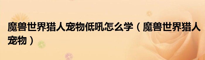 关于魔兽世界猎人宠物低吼怎么学,魔兽世界猎人宠物这个很多人还不知道,今天菲菲来为大家解答以上的问题,现在让我们一起来看看吧!