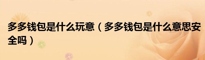 多多钱包是什么玩意(多多钱包是什么意思安全吗)