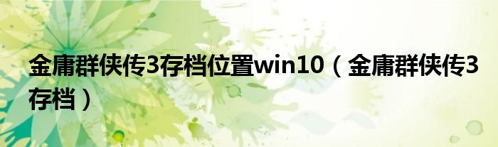 关于金庸群侠传3存档位置win10,金庸群侠传3存档这个很多人还不知道,今天菲菲来为大家解答以上的问题,现在让我们一起来看看吧!