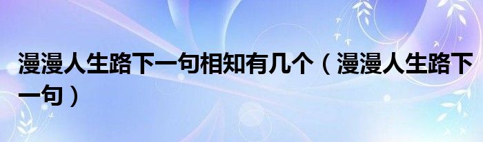 关于漫漫人生路下一句相知有几个,漫漫人生路下一句这个很多人还不知道,今天菲菲来为大家解答以上的问题,现在让我们一起来看看吧!