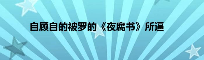 关于自顾自的被罗的《夜腐书》所逼这个很多人还不知道,今天菲菲来为大家解答以上的问题,现在让我们一起来看看吧!