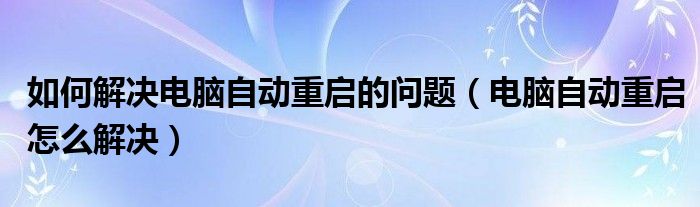 如何解决电脑自动重启的问题(电脑自动重启怎么解决)