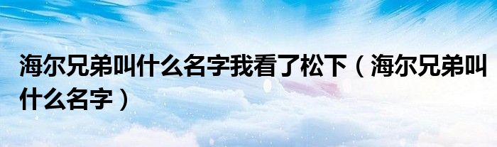 关于海尔兄弟叫什么名字我看了松下,海尔兄弟叫什么名字这个很多人还不知道,今天菲菲来为大家解答以上的问题,现在让我们一起来看看吧!