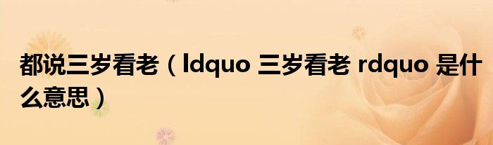 关于都说三岁看老,ldquo 三岁看老 rdquo 是什么意思这个很多人还不知道,今天菲菲来为大家解答以上的问题,现在让我们一起来看看吧!