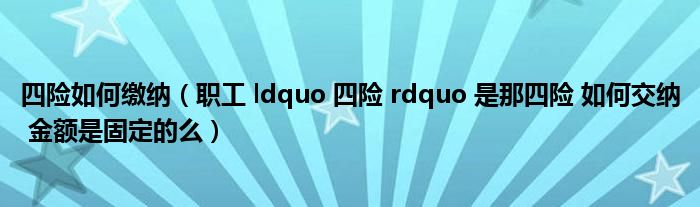 关于四险如何缴纳,职工 ldquo 四险 rdquo 是那四险 如何交纳 金额是固定的么这个很多人还不知道,今天菲菲来为大家解答以上的问题,现在让我们一起来看看吧!