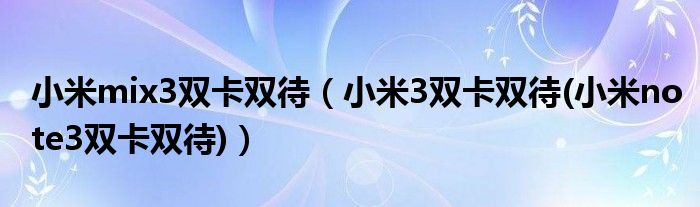 大家好,小常来为大家解答以上问题。小米mix3双卡双待,小米3双卡双待(小米note3双卡双待)很多人还不知道,现在让我们一起来看看吧!
