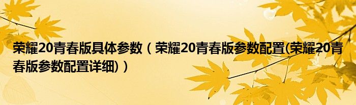 大家好,小常来为大家解答以上问题。荣耀20青春版具体参数,荣耀20青春版参数配置(荣耀20青春版参数配置详细)很多人还不知道,现在让我们一起来看看吧!