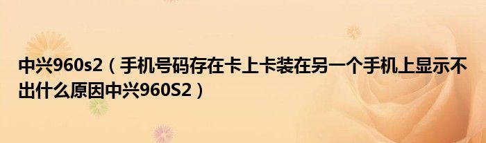 大家好,小常来为大家解答以上问题。中兴960s2,手机号码存在卡上卡装在另一个手机上显示不出什么原因中兴960S2很多人还不知道,现在让我们一起来看看吧!