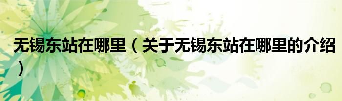无锡东站在哪里(关于无锡东站在哪里的介绍)