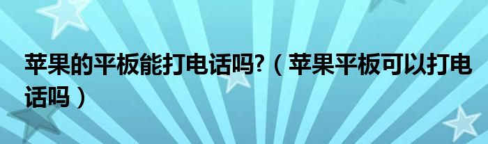 大家好,小晋来为大家解答以下问题,关于苹果的平板能打电话吗?,苹果平板可以打电话吗很多人还不知道,今天让我们一起来看看吧!