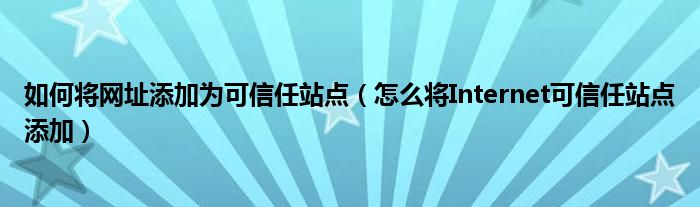 大家好,今天小悦来为大家解答以上问题。如何将网址添加为可信任站点,怎么将Internet可信任站点添加很多人还不知道,现在让我们一起来看看吧!