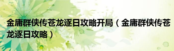 关于金庸群侠传苍龙逐日攻略开局,金庸群侠传苍龙逐日攻略这个很多人还不知道,今天菲菲来为大家解答以上的问题,现在让我们一起来看看吧!