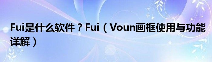 大家好,今天小悦来为大家解答以上问题。Fui是什么软件?Fui,Voun画框使用与功能详解很多人还不知道,现在让我们一起来看看吧!