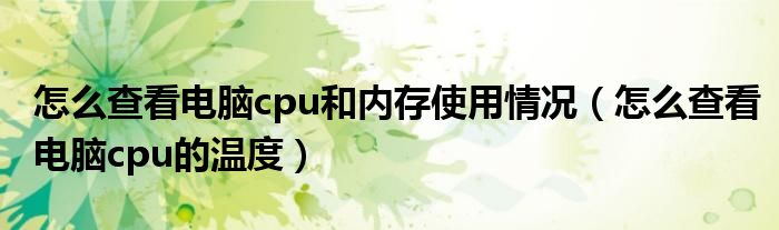 大家好,今天小悦来为大家解答以上问题。怎么查看电脑cpu和内存使用情况,怎么查看电脑cpu的温度很多人还不知道,现在让我们一起来看看吧!