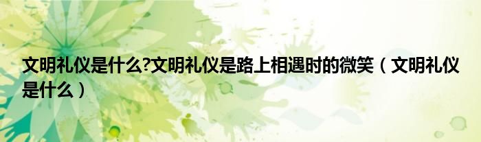 关于文明礼仪是什么?文明礼仪是路上相遇时的微笑,文明礼仪是什么这个很多人还不知道,今天菲菲来为大家解答以上的问题,现在让我们一起来看看吧!