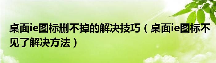 大家好,今天小悦来为大家解答以上问题。桌面ie图标删不掉的解决技巧,桌面ie图标不见了解决方法很多人还不知道,现在让我们一起来看看吧!