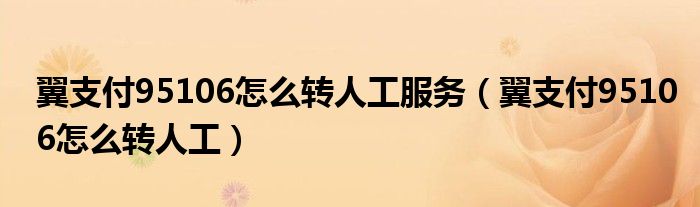 大家好,小晋来为大家解答以下问题,关于翼支付95106怎么转人工服务,翼支付95106怎么转人工很多人还不知道,今天让我们一起来看看吧!
