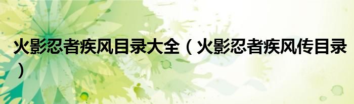 大家好,小晋来为大家解答以下问题,关于火影忍者疾风目录大全,火影忍者疾风传目录很多人还不知道,今天让我们一起来看看吧!