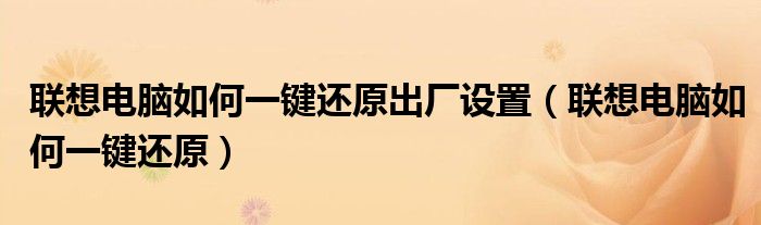 大家好,雨雨来为大家解答以上问题,联想电脑如何一键还原出厂设置,联想电脑如何一键还原很多人还不知道,现在让我们一起来看看吧!