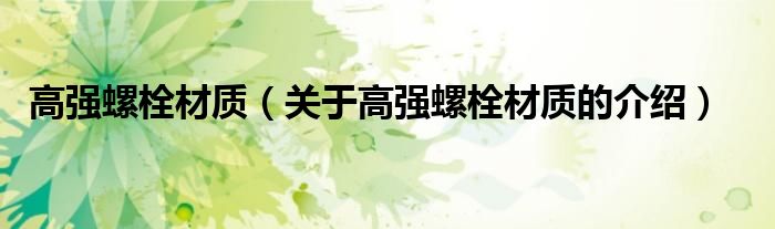 高强螺栓材质(关于高强螺栓材质的介绍)