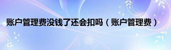 关于账户管理费没钱了还会扣吗,账户管理费这个很多人还不知道,今天菲菲来为大家解答以上的问题,现在让我们一起来看看吧!