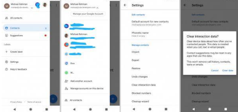 现在,您也可以清除与联系人的互动数据,以防万一您不想看到它。您可以从设备中清除与某人联系的次数,包括电话,短信,电子邮件。但是,如果您清除它,则可能会重置您的联系人的建议。好消息是,它实际上不会清除您的通话记录,联系人,短信,电子邮件等。