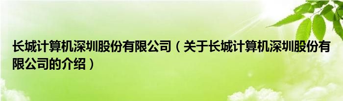 长城计算机深圳股份有限公司(关于长城计算机深圳股份有限公司的介绍)